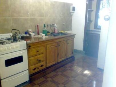 Casa de buena construcción con paredes tradicionales, aberturas de madera, techo de hormigón armado y tejas.