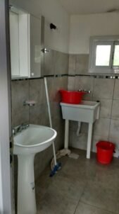 Cada casa cuenta con un baño completo.